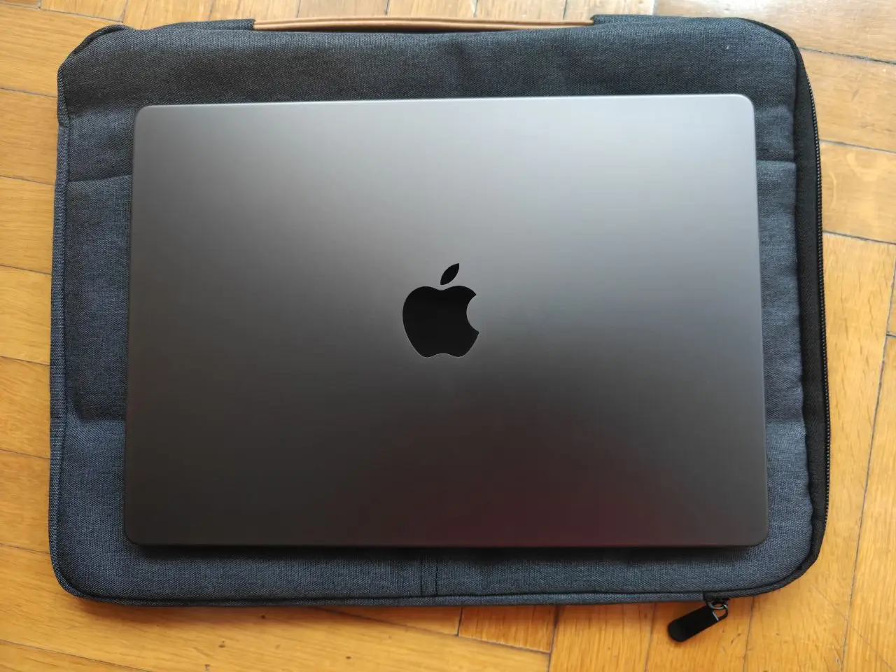 I purchased the 15-inch version for the 14-inch MacBook Pro and there is plenty of space left over. I preferred to take the larger version to avoid the mac being too close to the hinge and getting damaged during closing.